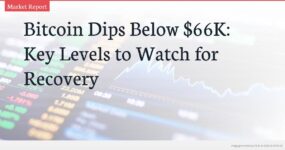 - Key resistance levels are identified at $66,400 (50% Fib retracement) and $67,000, while major support sits at $64,200 and $62,000.
