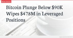 Bitcoin’s sharp decline below $90,000 has triggered massive liquidations totaling $478 million, with long positions accounting for over 90% of the losses. The sell-off has spread to major altcoins and meme coins that had posted strong gains earlier in the year. Analysts attribute the downturn to fading momentum, risk-averse sentiment ahead of U.S. jobs data, and Bitcoin ETF outflows.
