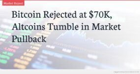 Bitcoin’s weekend rally was halted just above $70,000, triggering a broad cryptocurrency market pullback. Major altcoins including Ethereum and XRP followed BTC downward, with Dogecoin among the worst performers. The total crypto market cap lost $70 billion in a single day as volatility returned to digital asset markets.