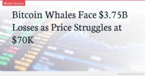 Bitcoin’s repeated failure to hold above the $70,000 psychological threshold reveals fragile demand amid a significant wave of whale capitulation. On-chain data from analyst Maartunn shows large holders realized nearly $3.75 billion in losses over four days, signaling a market redistribution phase rather than a simple downturn. This selling pressure from late-cycle entrants who bought near $96,000 creates substantial overhead resistance while testing critical support at $60,000-$65,000, keeping the market in a mature corrective phase.