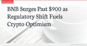 Binance Coin (BNB) surged past the $900 psychological barrier over the weekend, touching approximately $907 as a perceived regulatory thaw and accelerating institutional investment combined to lift the broader cryptocurrency market. The rally, which saw BNB reclaim a key technical zone, was catalyzed by the U.S. Securities and Exchange Commission’s reported decision to remove crypto from its 2026 priority risk list—a move hailed by former Binance CEO Changpeng Zhao as a potential harbinger of a new ‘Super Cycle.’ With major banks like Wells Fargo and Morgan Stanley deepening their crypto market involvement, traders are now parsing a packed U.S. macroeconomic calendar for clues on whether the bullish momentum can sustain.