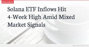 - Solana ETF inflows reached $23.57 million Wednesday—the highest in four weeks—but represent less than 1% of daily trading volume.