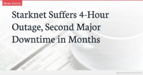 - This marks Starknet's second major outage in months, following a 5+ hour downtime in September after the Grinta upgrade that required two chain reorganizations.