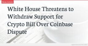 - The White House demands Coinbase return to negotiations with a bank-friendly yield agreement or risk losing administration support for the crypto market structure bill.